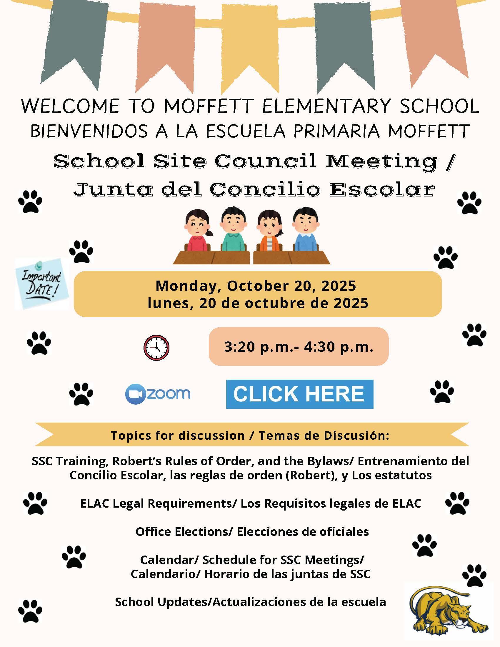 Join us for our School Site Council meeting Monday, October 20th at 3:20PM/ Están invitados a nuestra reunión del concilio escolar, lunes 20 de octubre a las 3:20 de la tarde. https://lennoxk12-org.zoom.us/j/84682961863?pwd=QqywiBxSy3qvpBip0is1BOsvbsy49g.1 Attached Files SSC Invite Oct 20, 2025.pdf 20 de octubre de 2025 Agenda De la junta del Consejo Escolar (SSC) .pdf October 20, 2025 - School Site Council (SSC) .pdf